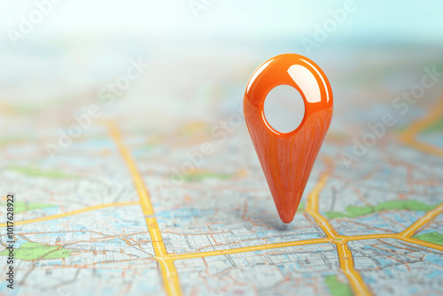 An orange location pin is prominently displayed above a detailed map, symbolizing navigation and location services.
