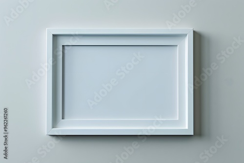 An overhead 3D view of a minimalist white picture frame on a plain background. The high key lighting highlights the frame's sleek edges and smooth finish, emphasizing a clean and modern look.