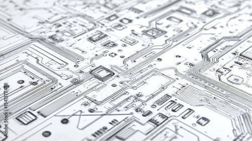An ultra-realistic 4K technical sketch of a circuit board viewed from above, drawn with drafting pencil precision. Generative AI