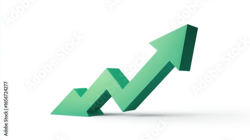 An upward arrow chart clipart, success element, bold flat design, green tones, isolated on white background.