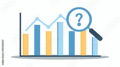 Analysis of a bar graph with a question mark inside of a magnifying glass over the data points