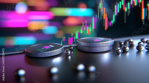 Analysis of market trends: digital graph illustrating price and volume fluctuations in stock trading