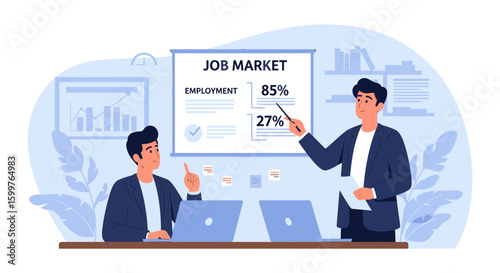 Analysis Of The Job Market Data During Business Presentation By Colleagues