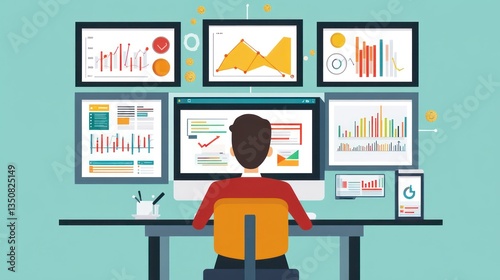 Analyst reviewing data charts on multiple screens