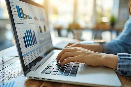 analytics professional working on a financial business data dashboard.