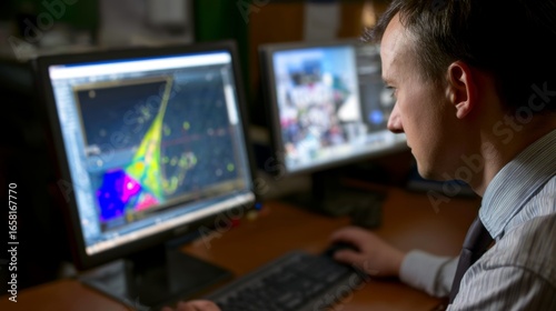 Analyzing Ballistic Trajectory Data - Forensic Technician at Work in Warm Studio Lighting