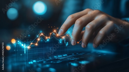 Analyzing Financial Data Hand Interacting with a Holographic Stock Market Graph on a Tablet