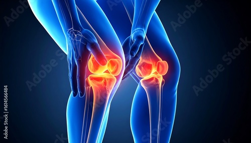 Anatomical rendering of human knees with highlighted inflammation