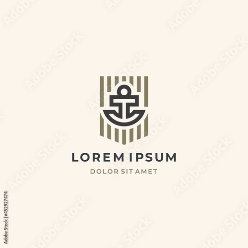 Anchor logo icon design template. Line anchor shield vector logotype.