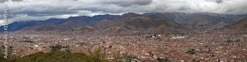 Ancient and historic city of Cuzco, Peru as viewed from a hilltop