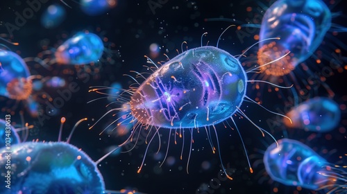 Ancient microbes under microscope reveal intricate cellular structures, showcasing their mysterious and ancient nature, ideal for scientific and educational content.