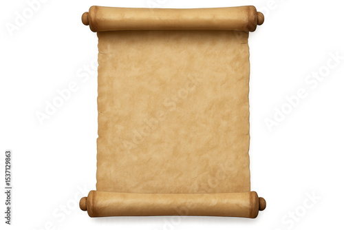 Ancient papyrus scroll unfurling on transparent backdrop, offering clean space for custom text or historic design element