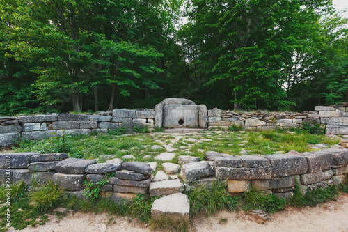 Ancient tiled dolmen in the valley of the river Jean. Monument of archeology megalithic structure