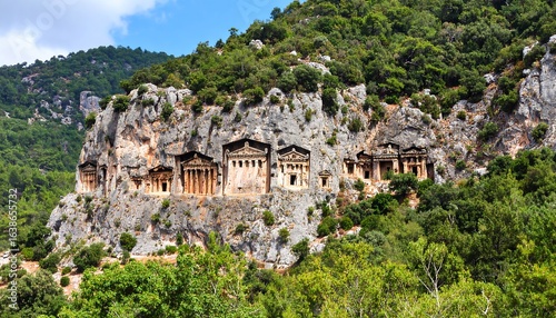 Ancient tombs nestled in a mountainside