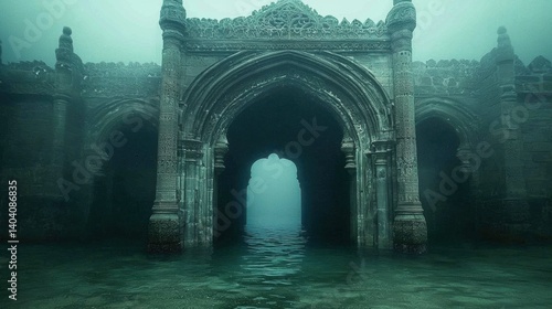 Ancient Underwater Ruins with Intricate Architecture and Mystical Aura