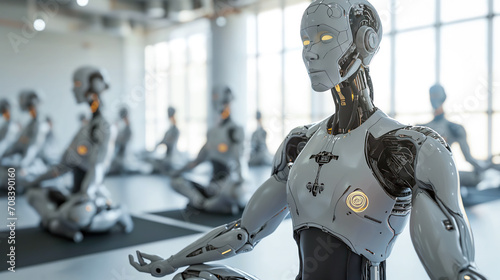 Android Robot Does Yoga in Yoga Class