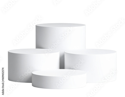 Angled 3D White Podium with Three Cylindrical Steps, Soft Lighting, Isolated PNG