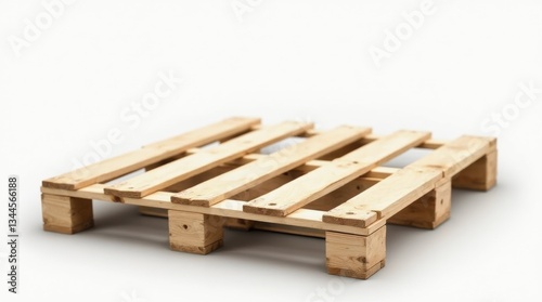 Angled front view of a light brown wooden pallet, subtle shadows, transparent background, industrial design