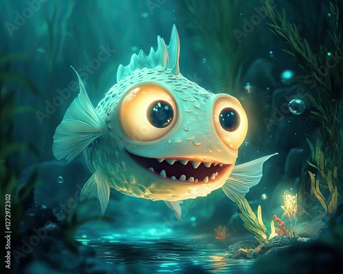 Anglerfish cartoon in soft watercolor,