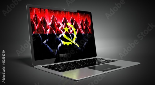 Angola - country flag and hackers on laptop screen - cyber attack concept