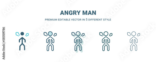 angry man icon in 5 different style. Outline, filled, two color, thin angry man icon isolated on white background. Editable vector can be used web and mobile