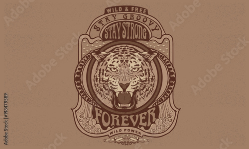 Animal rock and roll artwork for fashion and others. Tiger face. Stay wild stay groovy, Stay strong forever. Fearless tiger print design. Wild at the heart vector.