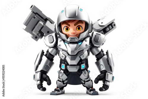 Animated Little Boy in Futuristic Robot Suit with Armour and Sharp Look , Cartoon Style