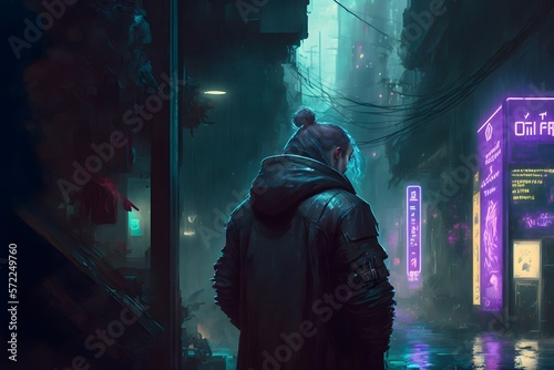 anime girl with headset vibe to music, cyberpunk, steampunk, sci-fi, fantasy