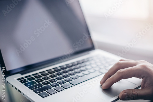 Anonymous man - hand using laptop. security network of connected devices and personal data security.hands typing on laptop
