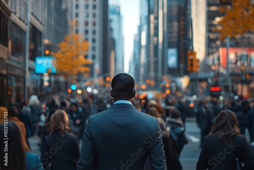 Anonymous Man in Gray Suit, Autumn Cityscape