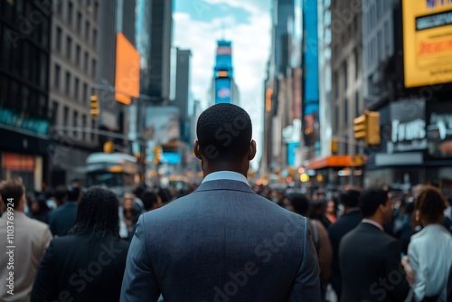 Anonymous Man Walking in Fast-Paced City Crowd