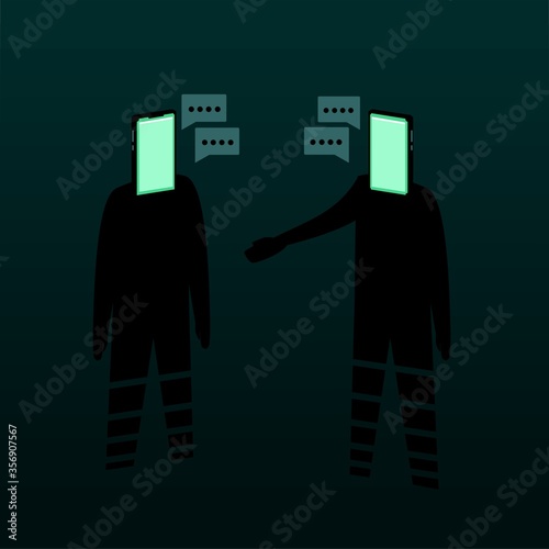 Anonymous on social networks. Human with a smartphone head. Online meeting. .Illustration Vector