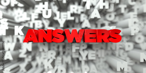 ANSWERS - Red text on typography background - 3D rendered royalty free stock image. This image can be used for an online website banner ad or a print postcard.