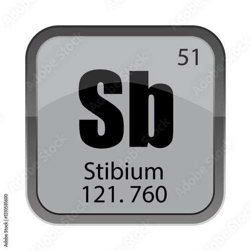 Antimony element. Sb chemical symbol. Atomic number 51. Periodic table square.