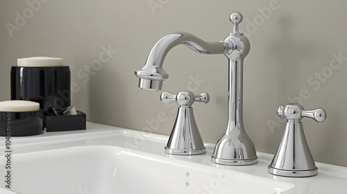 Antique chrome faucet on a ceramic washbasin. Faucet with one water switch.