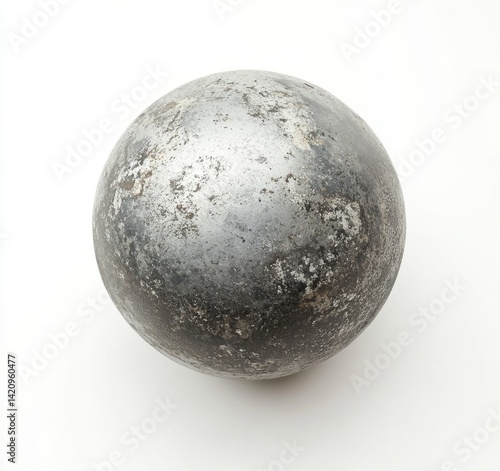 Antique, metallic sphere, showing signs of age. Distressed, round object