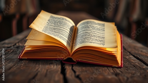 Antique Open Book on Rustic Wood Table - High-Quality AI Photo