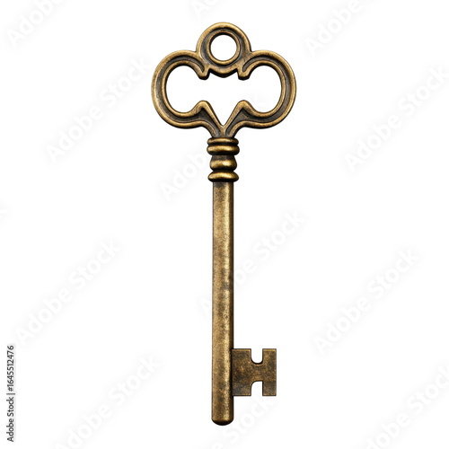 Antique ornate golden key isolated on black background, isolated on a transparent background