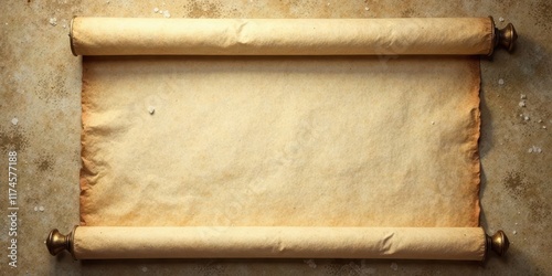Antique Rolled Parchment with Aged Texture and Decorative End Caps, Ideal for Historical or Fantasy Designs