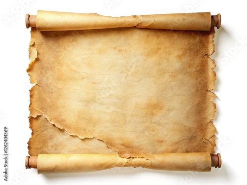 Antique Scroll and Worn Paper Sheet Isolated on White Background - Vintage Texture