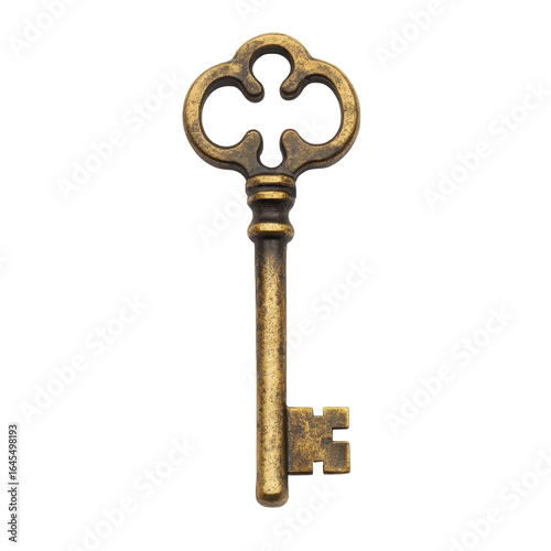 Antique Skeleton Key Golden Brass Old Key Black Background, isolated on a transparent background