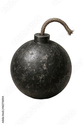 Antique spherical bomb with a thick rope fuse, symbolizing historical warfare and explosive danger