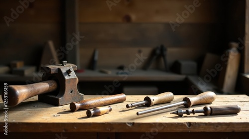 Antique Woodworking Tools on a Rustic Workbench A Still Life of Handcrafted Instruments