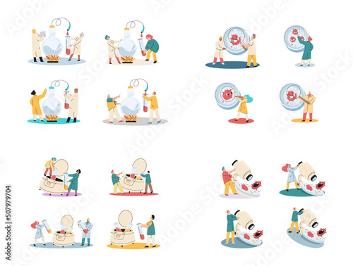 Antivirus vaccine. Scientists conducting scientific researches, laboratory assistants test tubes working in medical lab researchers making chemical experiments test liquids and equipment. Virus in lab