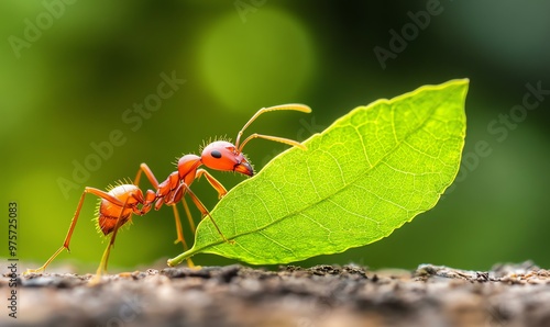 Ants in action, a tiny leaf-cutter ant transports a sizable leaf fragment, showcasing nature's intricate ecosystem and teamwork.