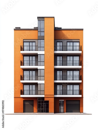 Apartment building isolate on white background, urban architecture,