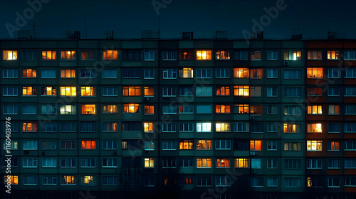 Apartment Building Shows Illuminated Windows at Night, Creating a Warm and Inviting Atmosphere