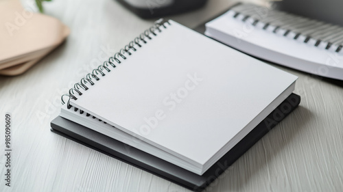Appealing spiral hardcover notebooks arranged on a modern workspace highlighting creativity and organization in a bright environment