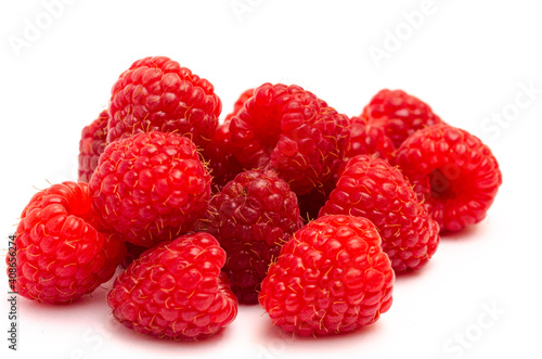 Appetizing red raspberry berries close up