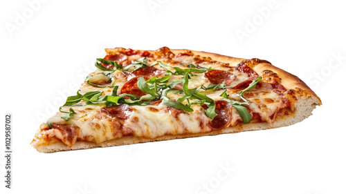 Appetizing slice of pizza on isolated background, template for designer project, PNG for mockup
